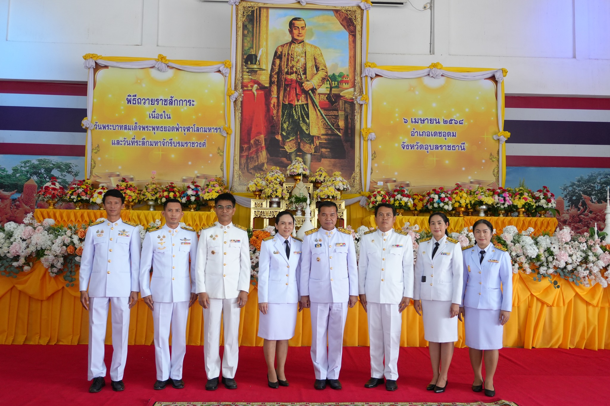 วันที่ 6 เมษายน 2568 นายเศรษฐโชค ศรีละพันธ์ ปลัดเทศบาลปฏิบัติหน้าทีนายกเทศมนตรีเมืองเดชอุดม พร้อมด้วย หัวหน้าส่วนราชการ พนักงาน ร่วมงานพิธีถวายราชสักการะ เนื่องใน วันพระบาทสมเด็จพระพุทธยอดฟ้าจุฬาโลกมหาราช และวันระลึกมหาจักรีบรมราชวงศ์ ณ วัดเวตวันวิทยาราม และ อาคารอเนกประสงค์องค์การบริหารส่วนตำบลเมืองเดช