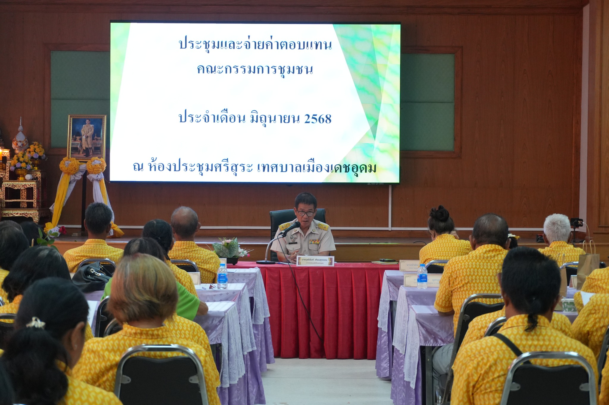 วันที่ 24 มิถุนายน 2568 เทศบาลเมืองเดชอุดม นำโดย นายวุฒินันท์ เทียมสุวรรณ นายกเทศมนตรีเมืองเดชอุดม พร้อมด้วย คณะผู้บริหาร สมาชิกสภาเทศบาล หัวหน้าส่วนราชการ พนักงาน และคณะกรรมการชุมชนทั้ง 31 ชุมชน ร่วมประชุมคณะกรรมการชุมชน เดือนมิถุนายน ณ ห้องประชุมศรีสุระ สำนักงานเทศบาลเมืองเดชอุดม