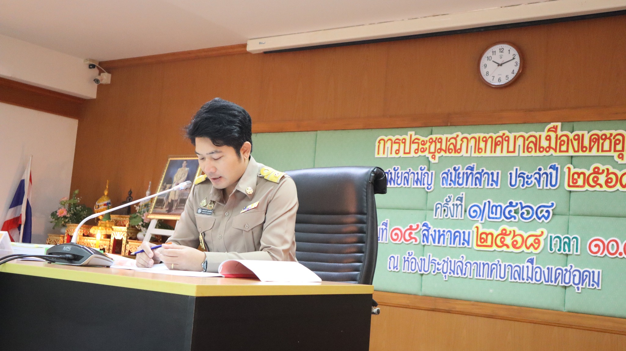 วันที่ 15 สิงหาคม 2568 สภาเทศบาลเมืองเดชอุดมเปิดประชุมสภา สมัยสามัญ สมัยที่สาม ครั้งที่ 1/2568 ณ ห้องประชุมสภาเทศบาลเมืองเดชอุดม ซึ่งในการประชุมครั้งนี้มีระเบียบวาระดังต่อไปนี้
