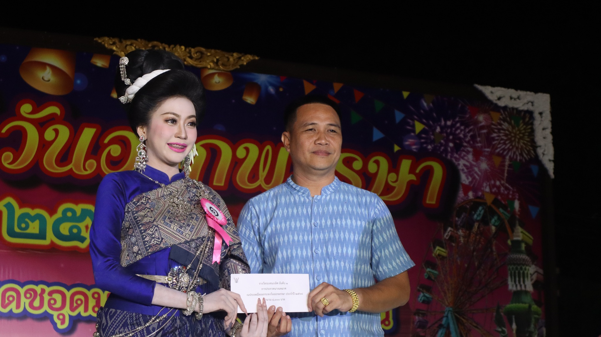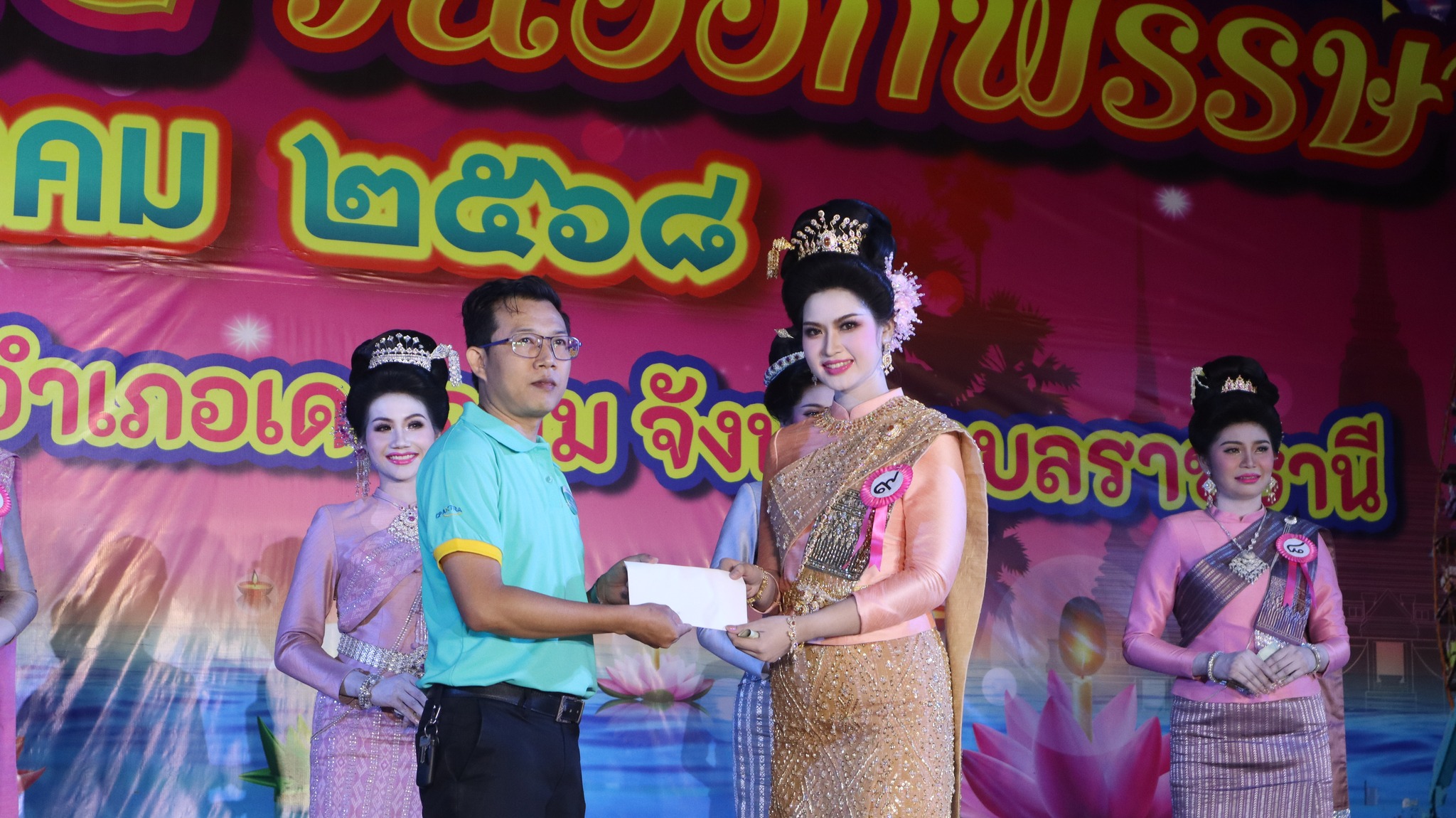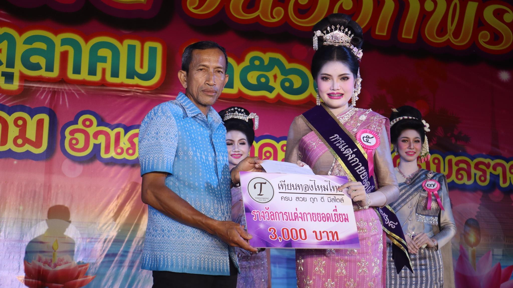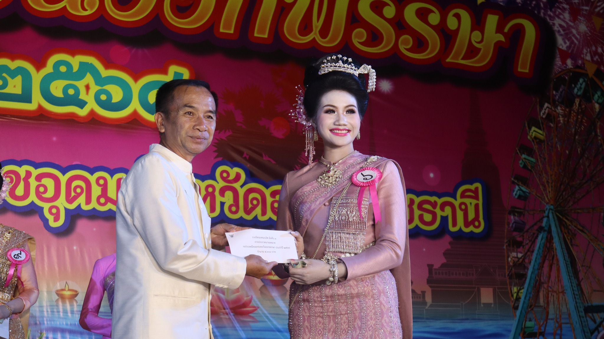 6. รางวัลการแต่งกายยอดเยี่ยม (จากร้านเทียนทองไหมไทย) ได้แก่ นางสาวนราทิพย์ คัทธรินทร์ หมายเลข 5 ชุมชนแดนเกษมส่งเข้าประกวด