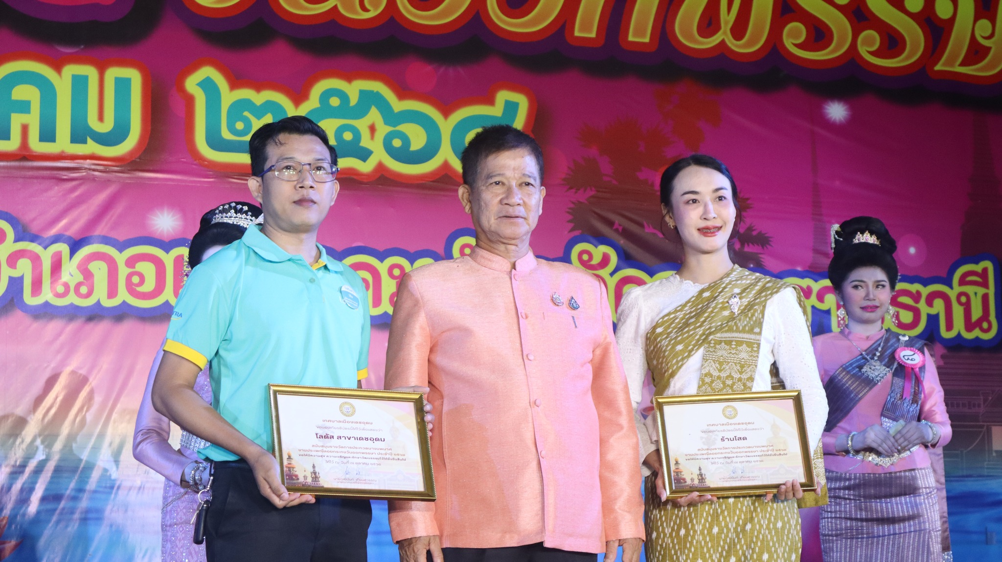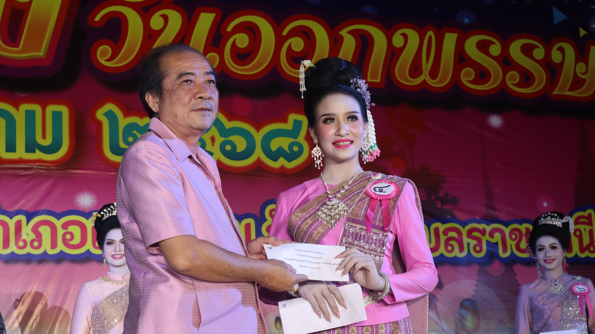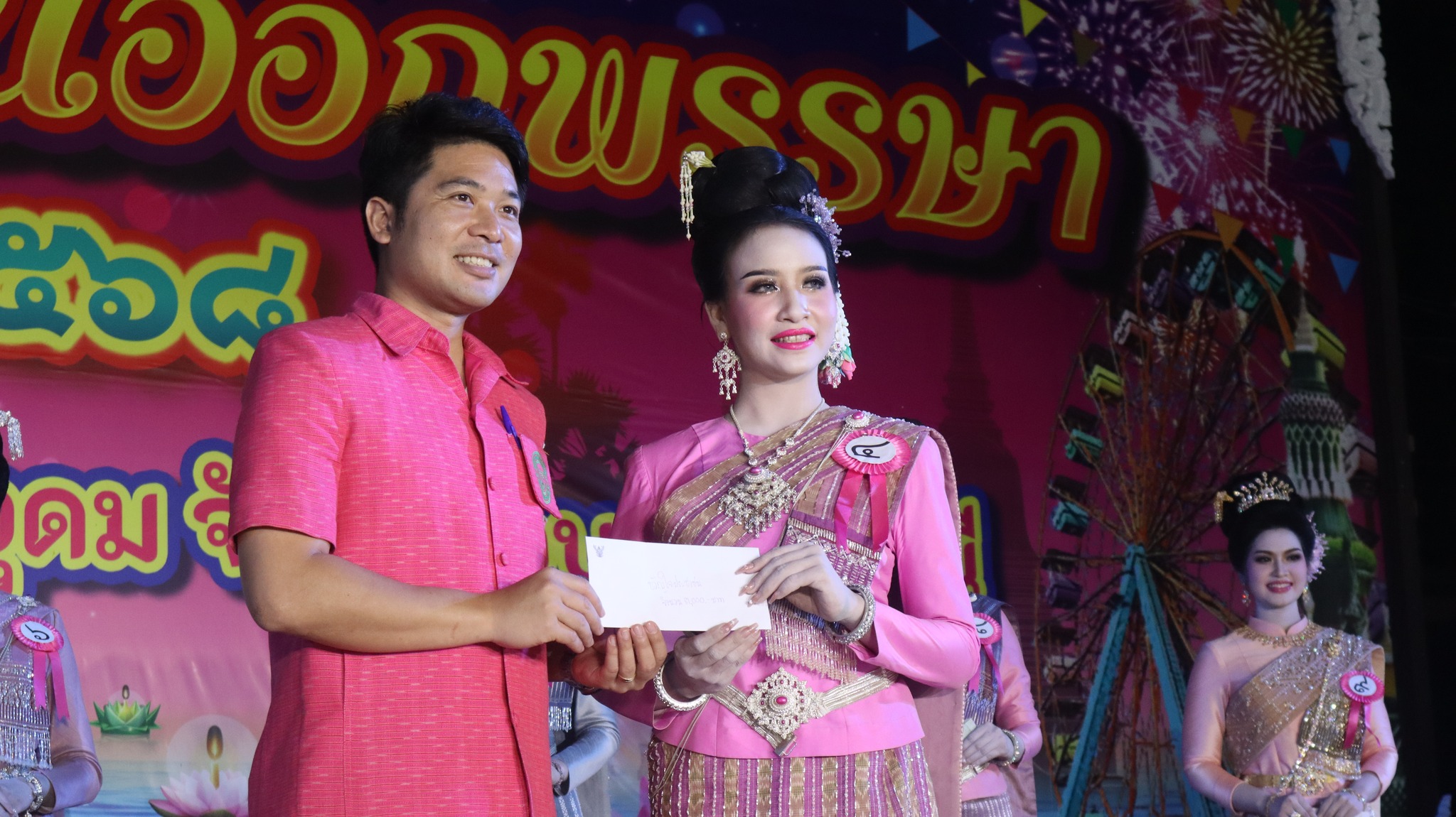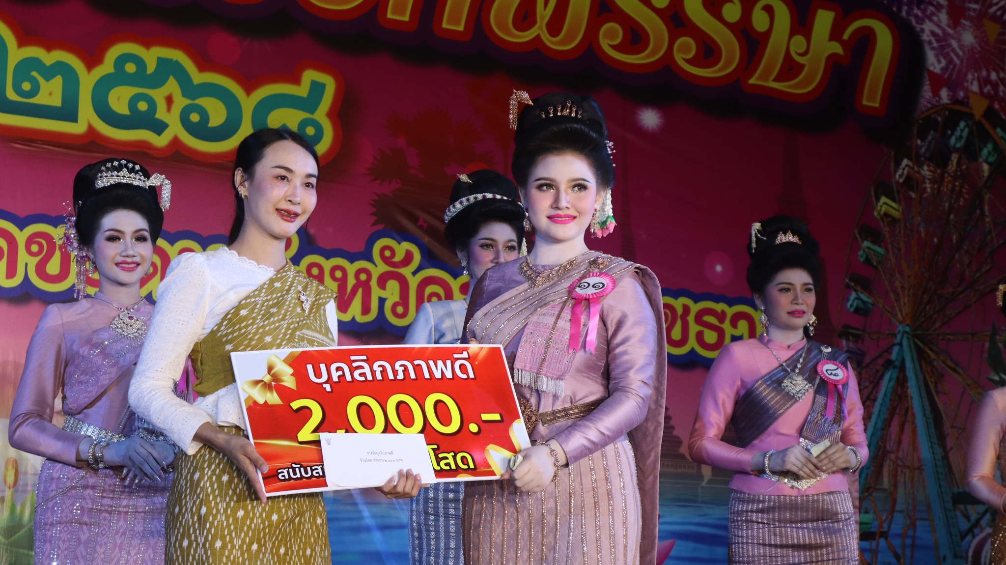 6. รางวัลการแต่งกายยอดเยี่ยม (จากร้านเทียนทองไหมไทย) ได้แก่ นางสาวนราทิพย์ คัทธรินทร์ หมายเลข 5 ชุมชนแดนเกษมส่งเข้าประกวด