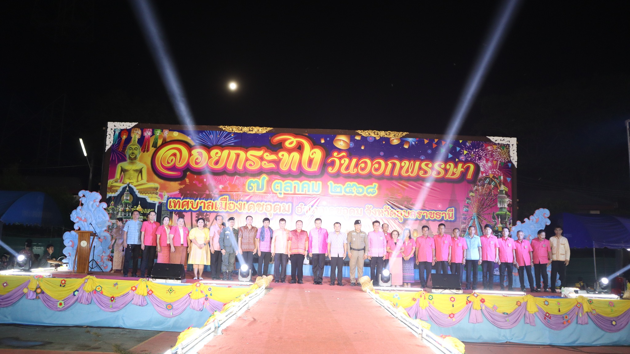 วันที่ 7 ตุลาคม 2568 เทศบาลเมืองเดชอุดม นำโดย นายวุฒินันท์ เทียมสุวรรณ นายกเทศมนตรีเมืองเดชอุดม พร้อมด้วยคณะผู้บริหาร นายเจนณรงค์ เดชอนันต์ ประธานสภาเทศบาลเมืองเดชอุดม พร้อมด้วย สมาชิกสภาเทศบาลเมืองเดชอุดม นายเศรษฐโชค ศรีละพันธ์ ปลัดเทศบาล พร้อมด้วยหัวหน้าส่วนราชการ พนักงาน ชุมชน ร่วมงานสืบสานประเพณีลอยกระทงวันออกพรรษา ประจำปี 2568 ณ บริเวณสวนสมเด็จย่า และ ท่าลำน้ำโดม วัดแสงเกษม